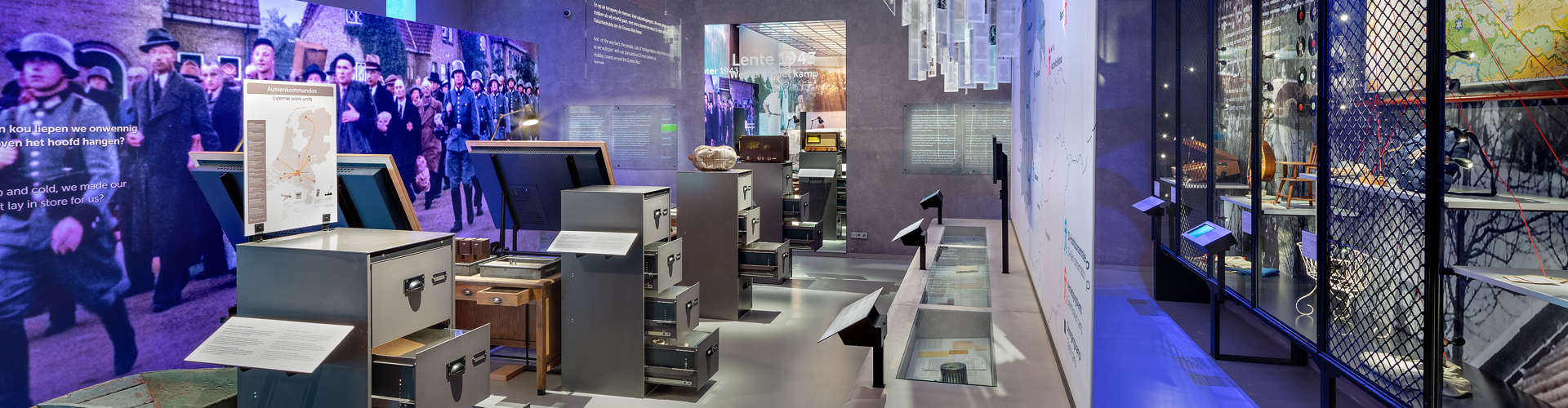 After the introductory film, you enter the room with a view of the camp grounds where you come face to face with the past. The permanent exhibition is made up of seven ‘islands’ which together encompass 18 months of Camp Vught both chronologically and thematically. A unique aspect is the focus on the roles people took on – either voluntarily or under pressure: of victim, perpetrator, bystander or helper.